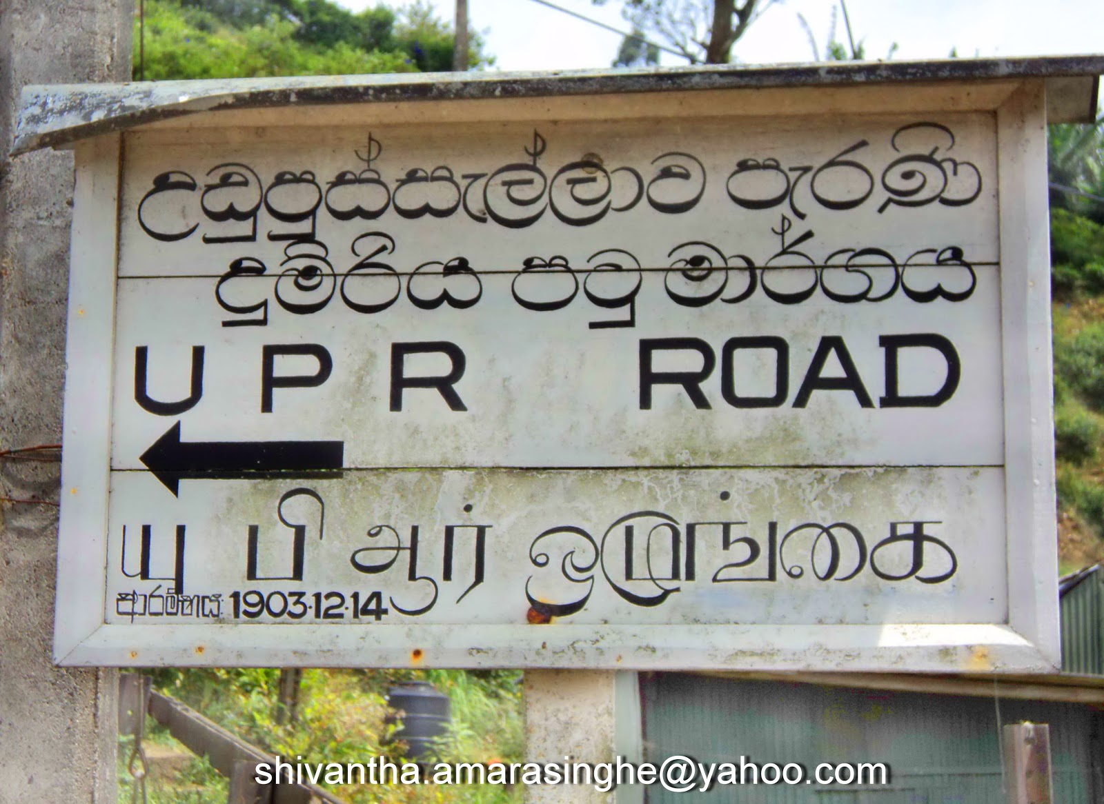 | නානුඔය දුම්රිය ස්ථානයේ අැති උඩුපුස්සැල්ලාව දුම්රිය මාර්ගයේ දිශා ලකුණ |